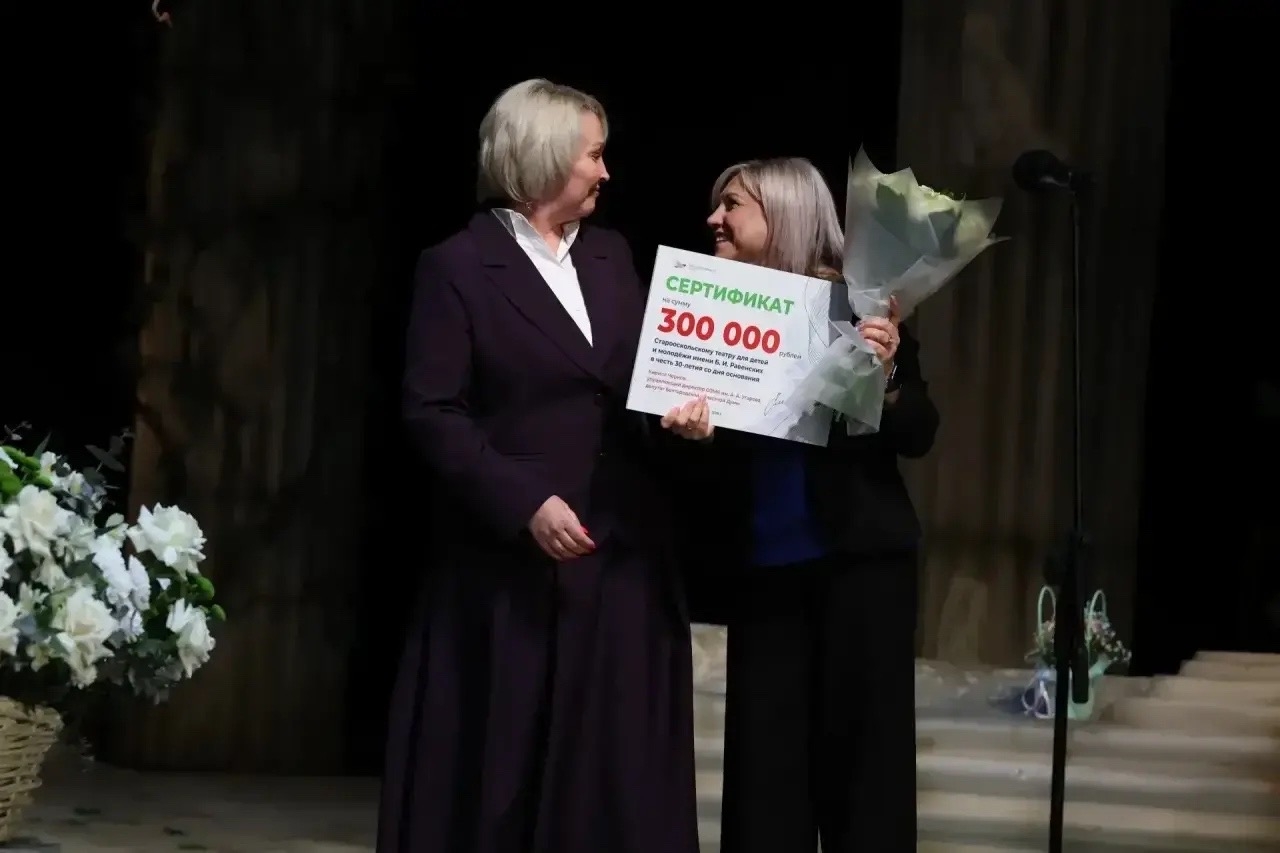 Отдельная благодарность управляющему директору Оскольского электрометаллургического комбината имени А.А. Угарова, депутату областной думы Кириллу Чернову за сертификат на 300 тысяч рублей. Средства пойдут на развитие театра.